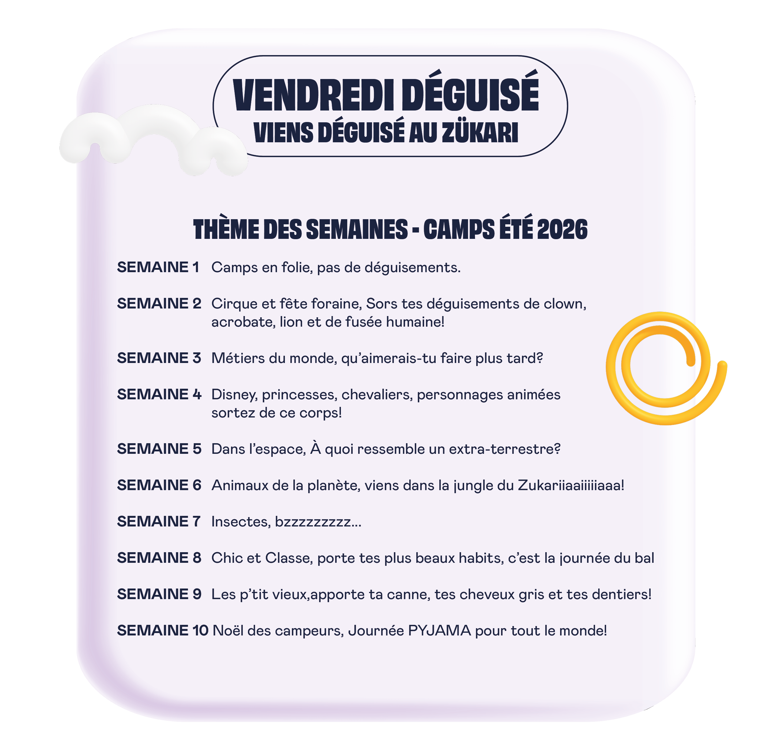 *À l’inscription de 3 semaines et plus par enfant, obtenez 10 $ de rabais sur chacune de vos semaines!